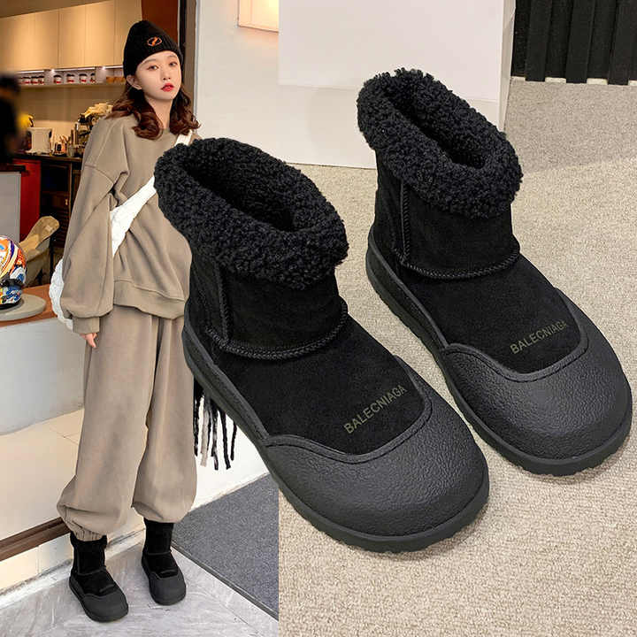 アンクルフラットプラットフォーム女性スノーブーツスエードぬいぐるみ暖かいカジュアル冬厚いゴス靴チェルシー