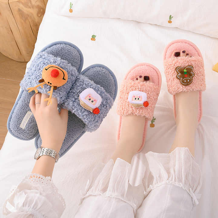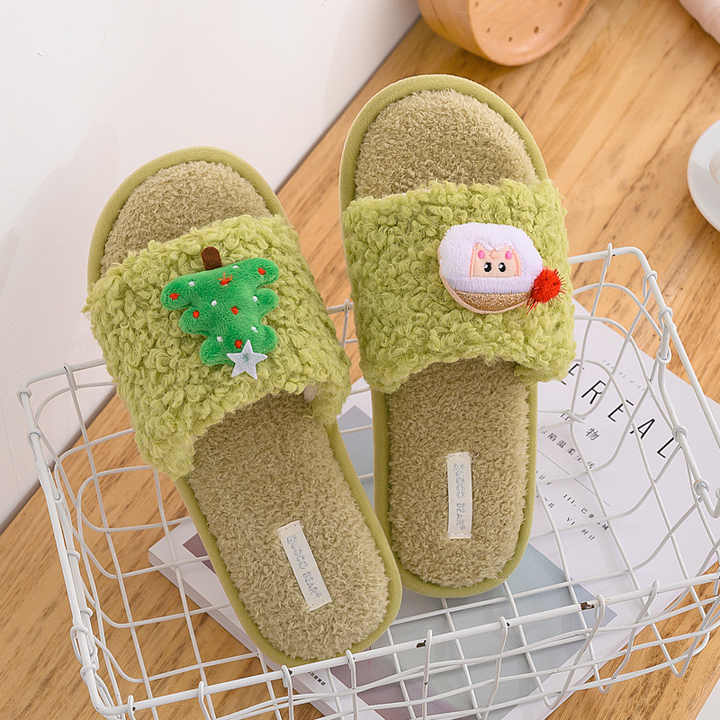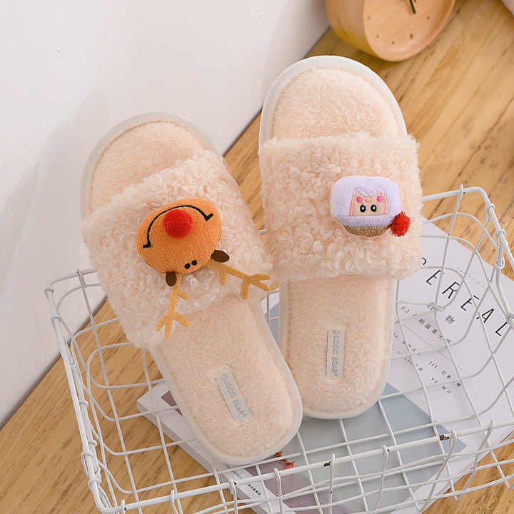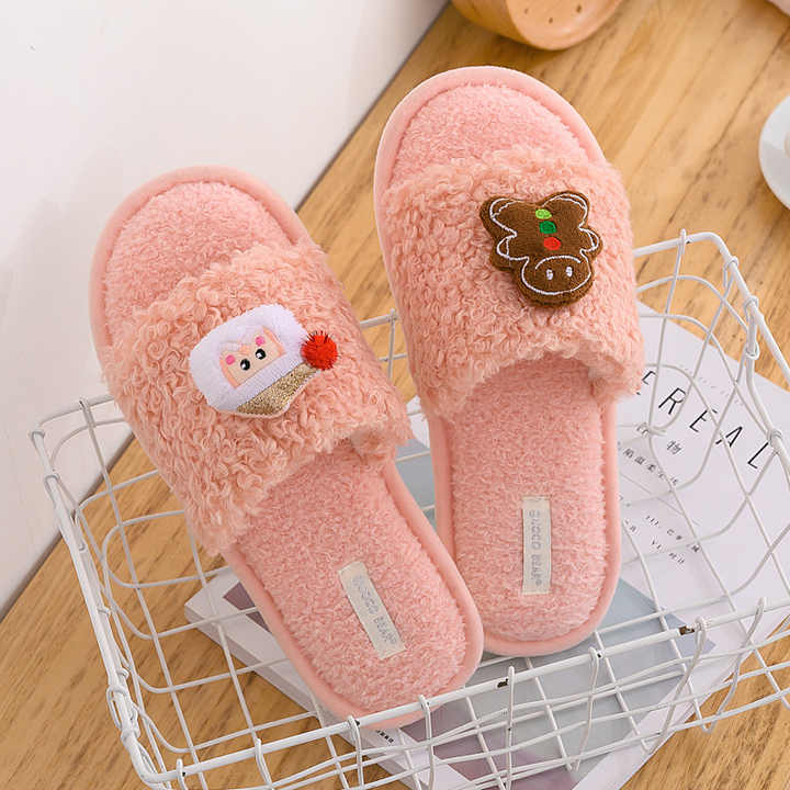 クリスマス冬の新綿かわいいカーリーファー漫画スリッパ女性のホーム暖かいぬいぐるみ