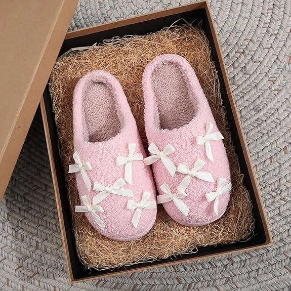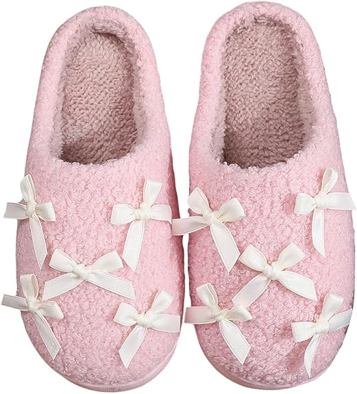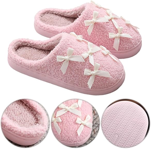 女性弓スリッパかわいいぬいぐるみふわふわした暖かい毛皮のスリッパ屋内の家の冬
