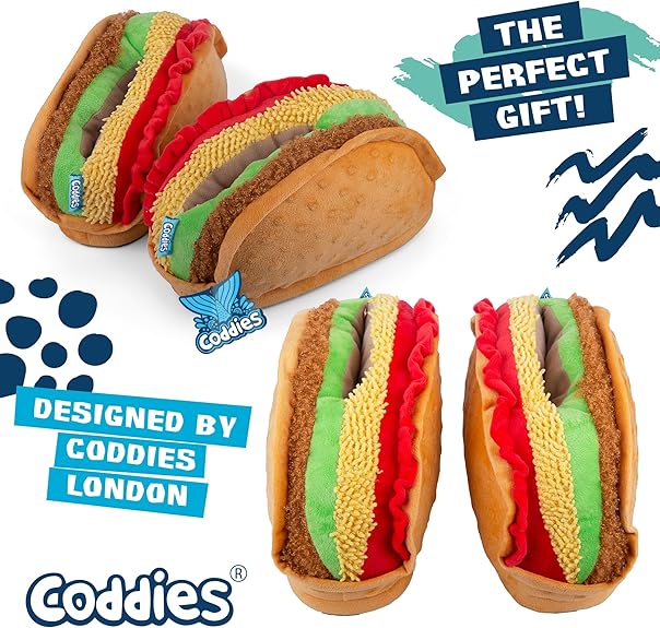 優れたアンチスキッドグリップ - タコススリッパの家の周りをよろめないようにしてください。高グリップの皮膚のソールを持ち、足の痛みを防ぎます。これらのタコスは、タフで、毒性がなく、洗うのが簡単です。