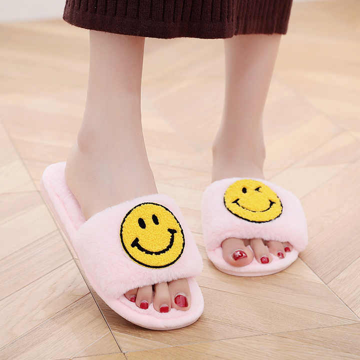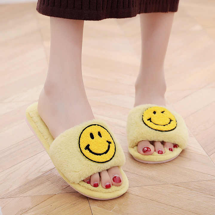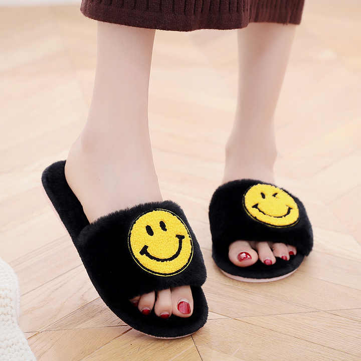 冬のホーム女性ふわふわスリッパスライド新しいかわいいスリッパオープントゥ寝室漫画レディースハウス毛皮