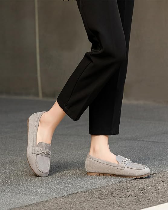 スリップ耐性と頑丈な:Sラインデザインを備えた0.5インチの厚いゴム製アウトソールを備えたこれらの女性のローファーは、濡れたものや滑りやすい表面を歩くときに究極の安定性とグリップを提供します。運転や屋外アクティビティに適しています