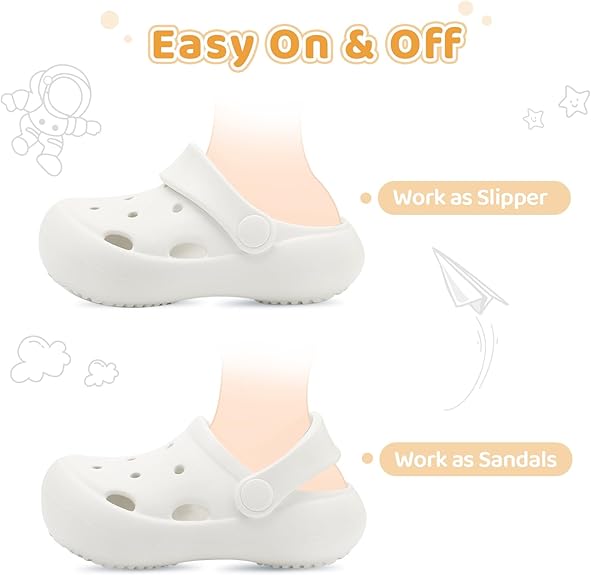 究極の安全性と快適さ:アクティブな遊びのために設計されたこれらの幼児の庭の詰まりは、滑り止めのトレッドと柔軟なEVA構造を少し足で曲げる柔軟なEVA構造を特徴としています。軽量のデザインは疲労を防ぎますが、ピボットストラップは、プールでのランニング、ジャンプ、またはスプラッシュ中に安全なフィット感を保証します。