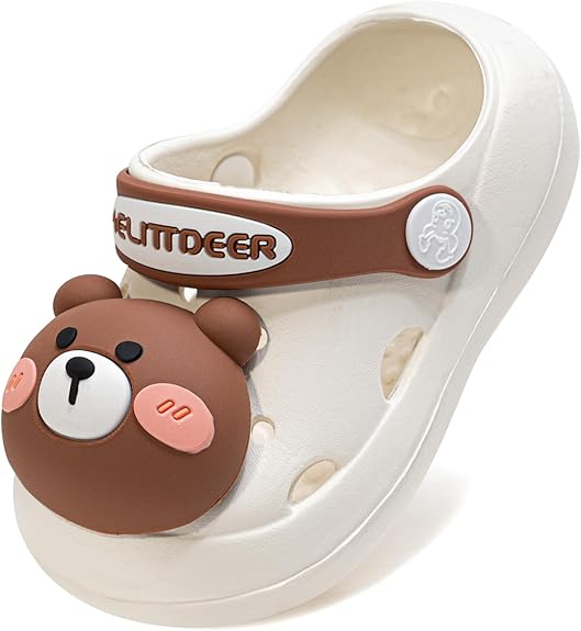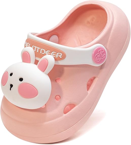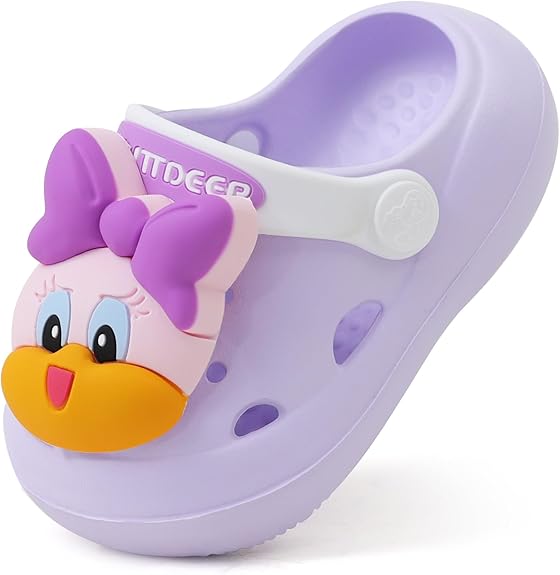 愛らしいキッズシューズ:かわいい取り外し可能な漫画の魅力と、より安全なフィット感のためにピボットヒールストラップを提供します。